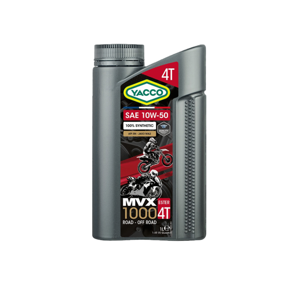 Yacco MVX 1000 4T SAE 10W50 is a 100% synthetic oil for 4-stroke motorcycle engines and esters-based formula.